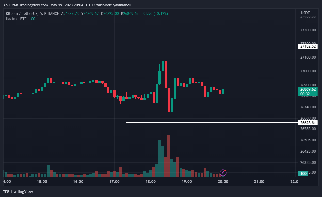 Bitcoin son saatlerde 27.180 dolara yükselip ardından 26.600 dolara gerilemiş olsa da, şuan itibariyle 26.850 dolar seviyelerinde dengelenmiş gibi gözükmekte.