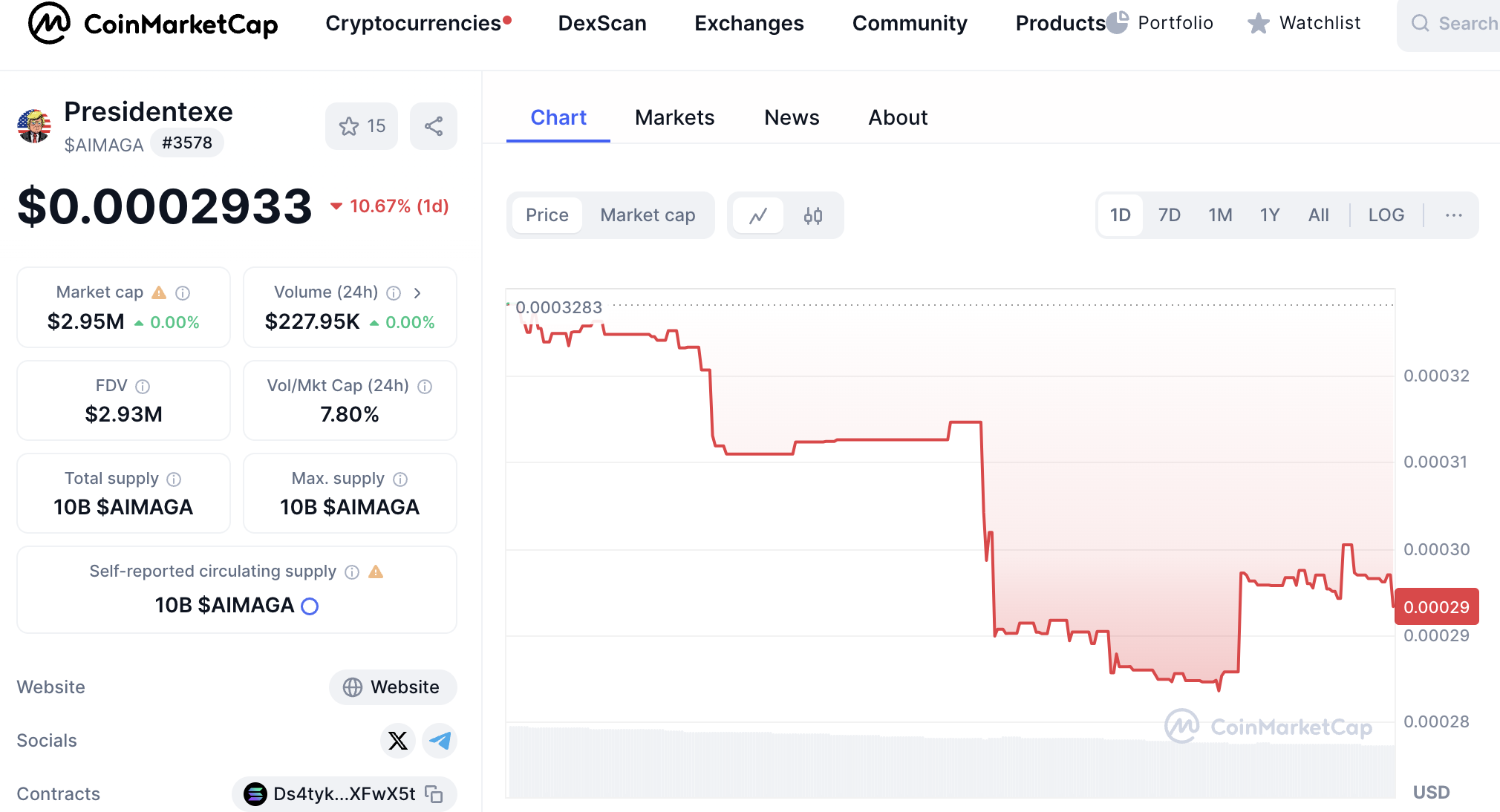 PresidentEXE, CoinMarketCap’te listelendi. CoinMarketCap, kripto para birimlerinin fiyatlarını, piyasa değerlerini, piyasa hacimlerini ve diğer önemli verileri takip eden önde gelen bir kripto para veri izleme sitesidir. Bu, PresidentEXE ve $AIMAGA token’ının görünürlüğünü ve erişilebilirliğini artırır, potansiyel yatırımcılar ve kullanıcılar için önemli bir kilometre taşıdır. Kullanıcılar artık CoinMarketCap üzerinden PresidentEXE’nin piyasa performansını, fiyat değişikliklerini ve diğer kritik verileri gerçek zamanlı olarak takip edebilirler.