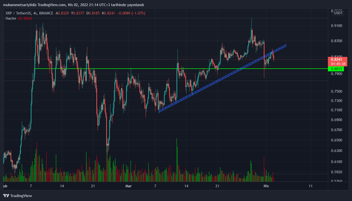Kripto para yatırımcılarının yakından takip ettiği bir altcoin olan XRP, haberimizin yazıldığı esnada 0.82 dolar seviyelerinden işlem görmeye devam ediyor.