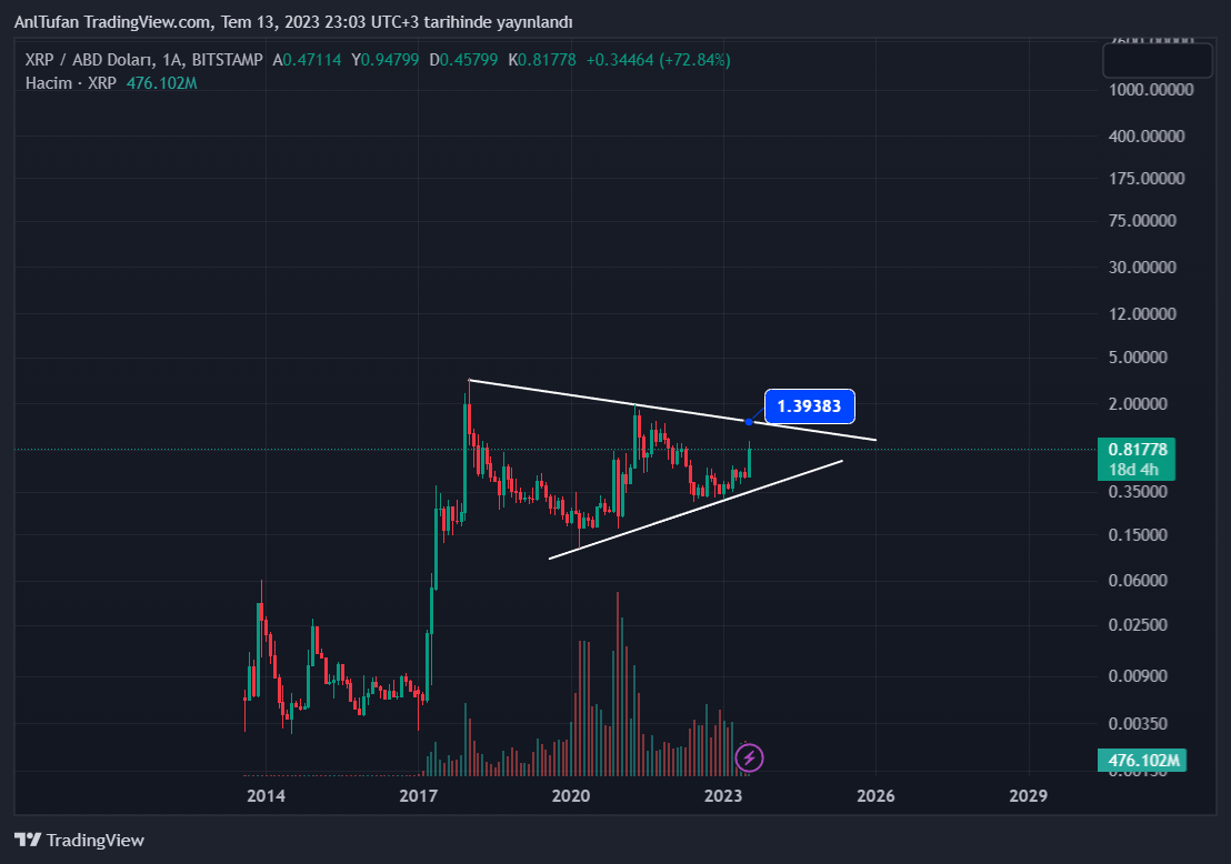 Şuan itibariyle XRP’nin üzerinden SEC baskısı kalkmış durumda. Önümüzdeki süreçte bir aksiliğin çıkmaması halinde XRP’nin 1.39 dolar seviyelerine yer alan major düşen trendine kadar yükseliş yaşaması bekleniyor.