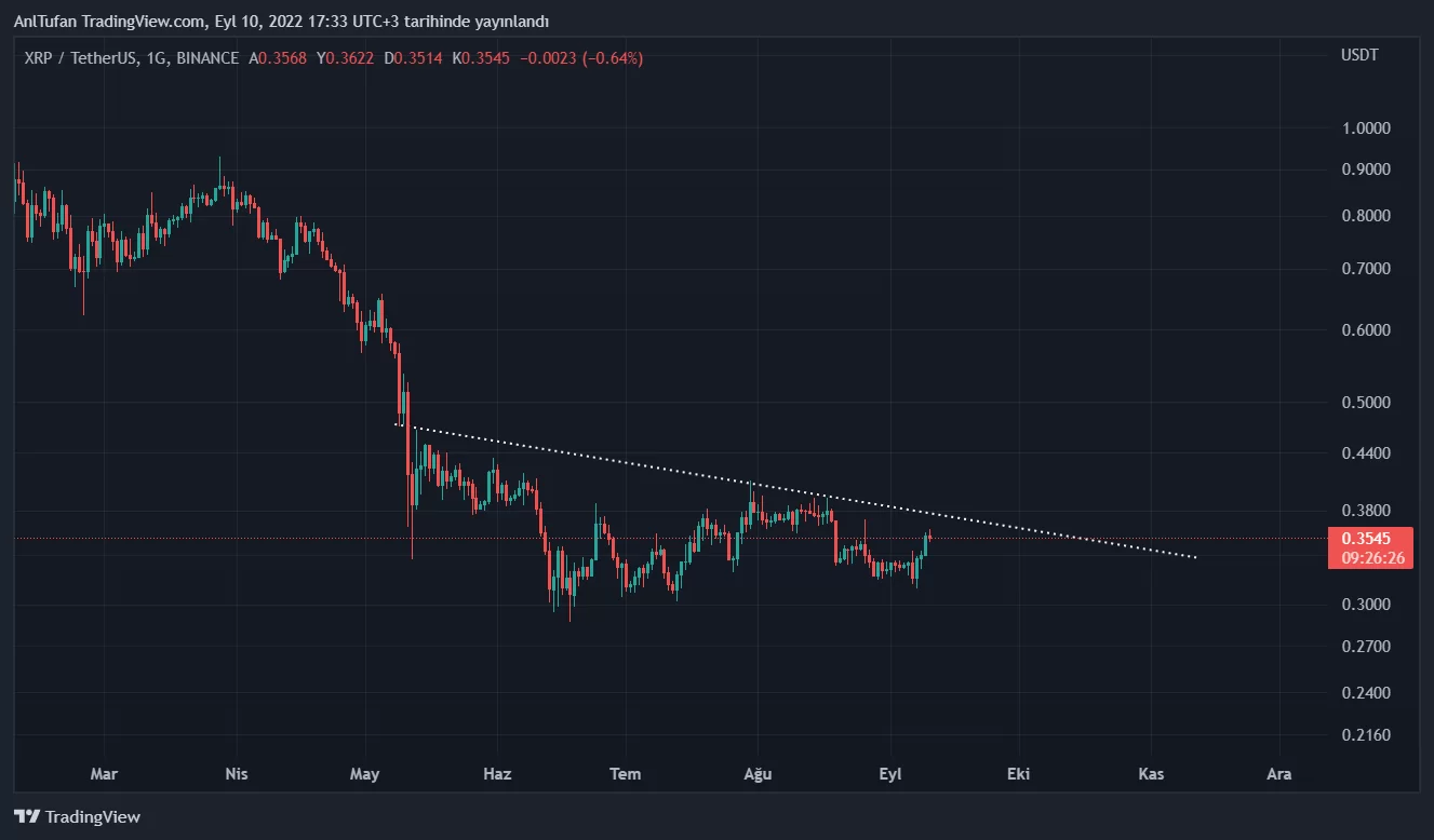 Haberimizin yazıldığı esnada 0.35 dolar seviyelerinden işlem gören XRP, halen düşen trend noktasına kadar yükselmeyi başaramamış durumda.