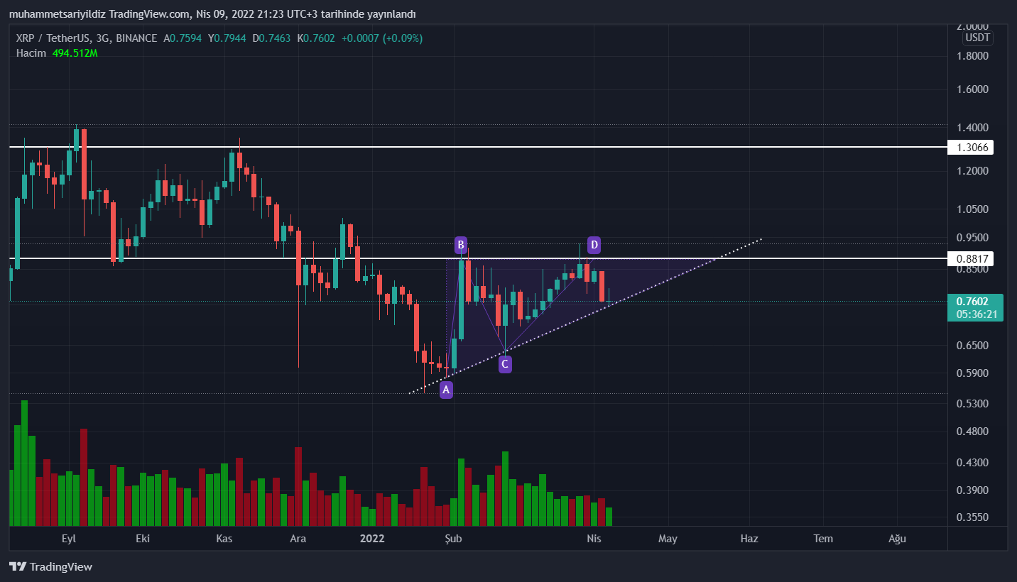 İlerleyen günlerde SEC davasından gelebilecek olan olumlu haberlerle birlikte yükselişe başlayabilecek olan XRP, 0.88 dolar direncinin kırılmasıyla birlikte kısa süre içerisinde 1.30 dolar seviyelerine kadar değer kazanabilir.