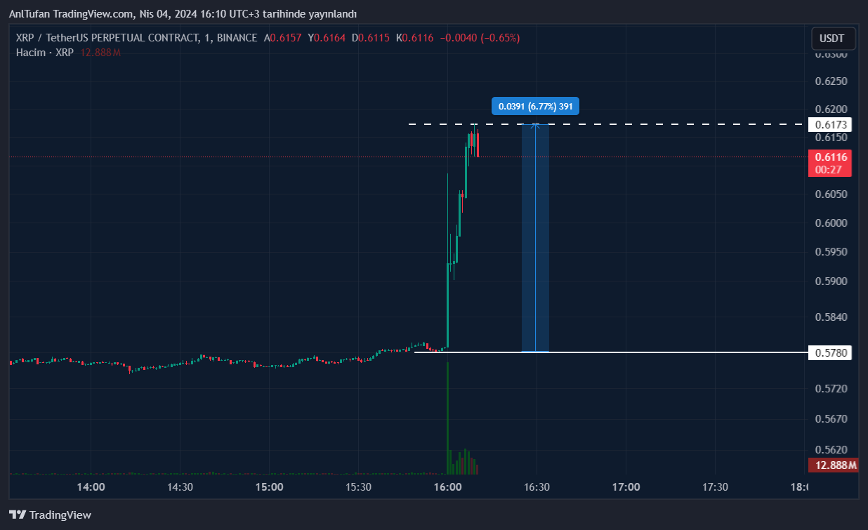 Son dakikalarda gelen bu duyuru ile birlikte XRP fiyatının yükselişe geçtiği görüldü. XRP Binance vadeli piyasada son gelişmeler sonrasında %6’dan fazla değer kazanmayı başardı.