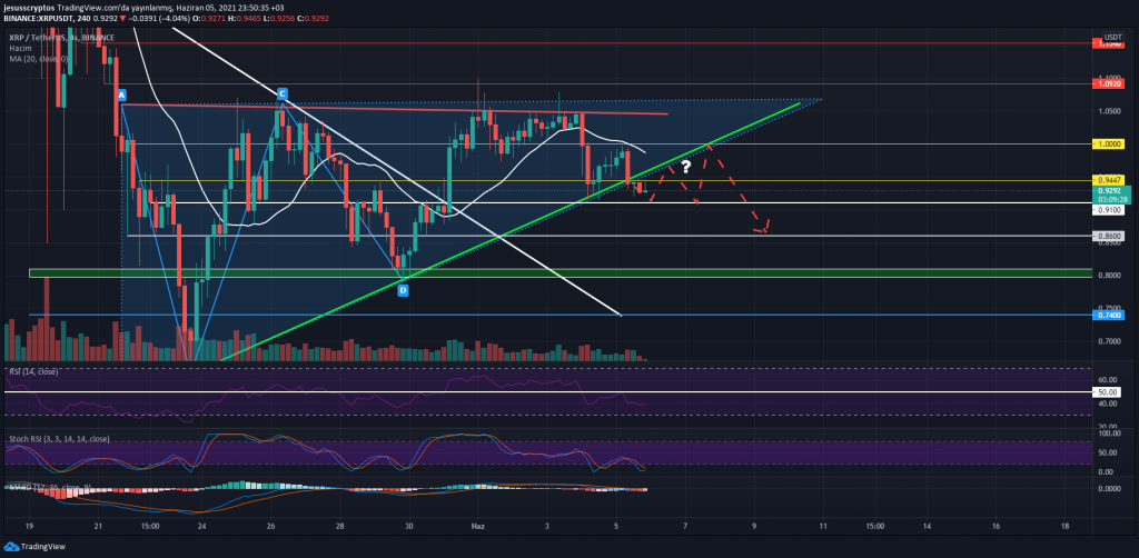 Son olarak şayet piyasa tekrar yükselişe geçer ve XRP için de pozitif bir haber gelirse, XRP’nin 0.978 – 1 dolar aralığının kuvvetli bir şekilde kırdığını görebiliriz.