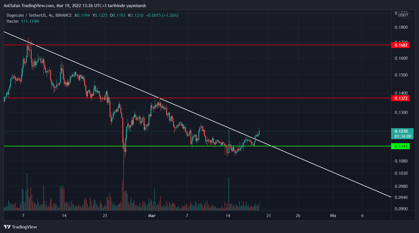 0.1682 dolar seviyesine yükselmesi için öncelikle 0.1372 dolar direncini aşması gereken Dogecoin, bu direnç seviyesini aşamaması durumunda ise 0.1140 dolar major desteğine düşüş yaşayabilir.