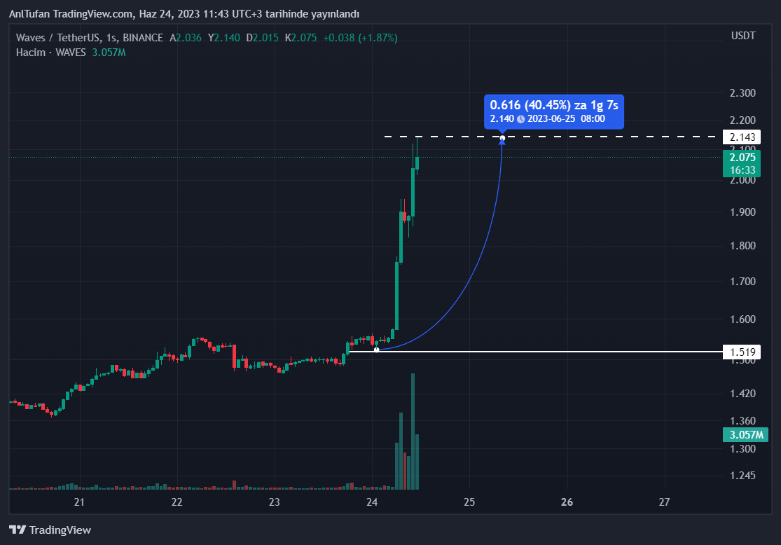 Şuan itibariyle bu darbe girişiminin lider kripto para birimi Bitcoin‘e (BTC) herhangi bir etkisi olmasa da, Binance‘deki Waves isimli altcoin’in sert bir şekilde yükseliş yaşamasını sağladı.