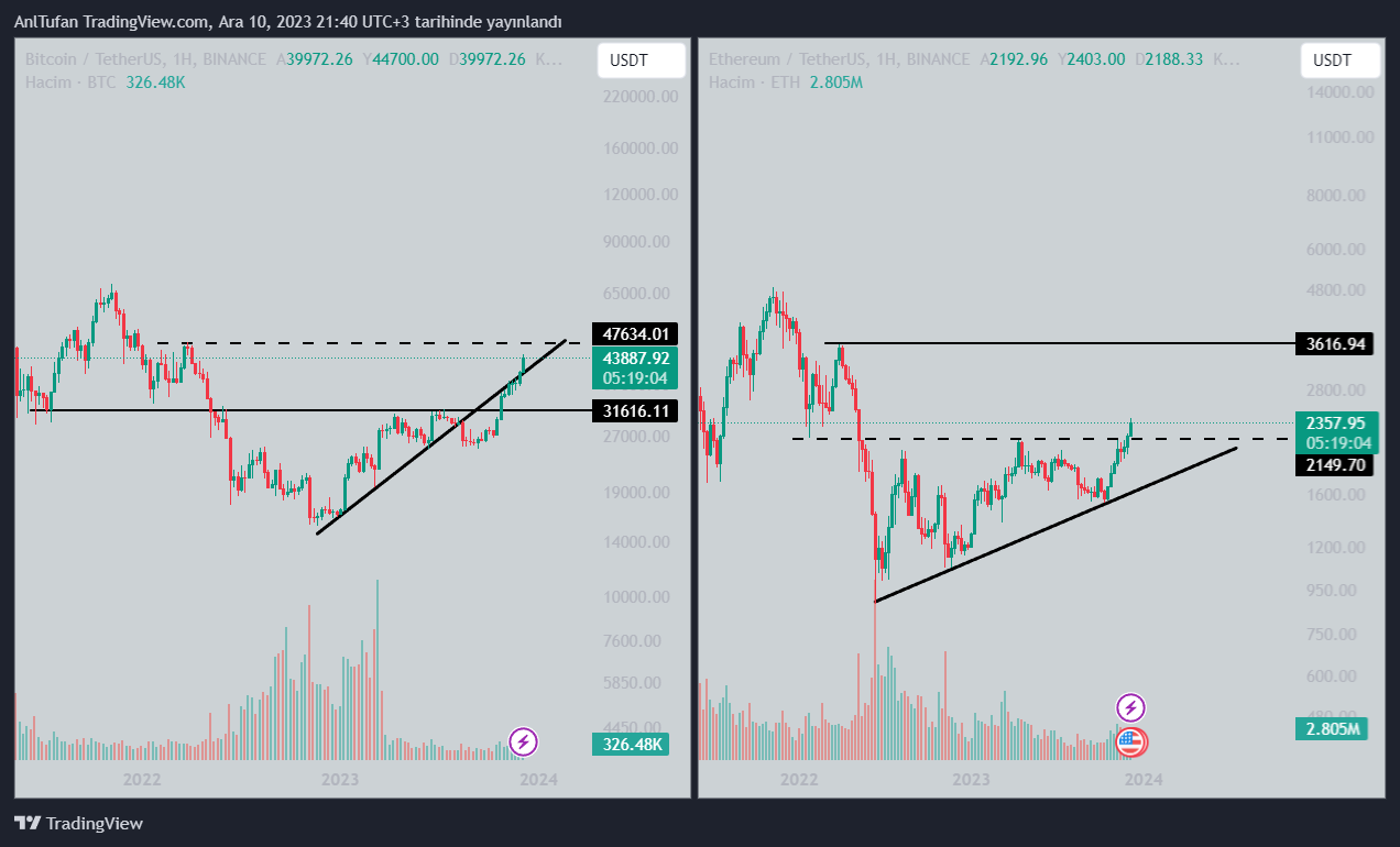 Önümüzdeki haftalarda ise bir aksilik olmadığı sürece BTC’nin 47.500 dolar direncine yükseldiğini görebiliriz.
