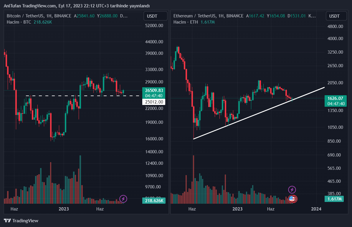 Bitcoin’in 25 bin, ETH’nin ise 1.500 dolar seviyelerini kaybetmesi ise kripto piyasasında sert düşüşler getirecektir.