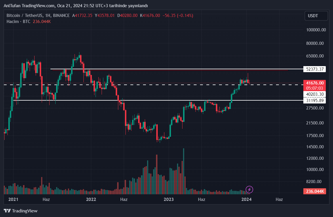 Halen birçok piyasa uzmanının işaret ettiği 52 bin dolar direncine ulaşmayan BTC, 40 bin dolar desteğini kaybetmediği sürece bu seviyeyi hedeflemeye devam edecektir.