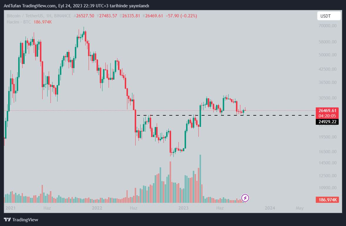 Önümüzdeki süreçte Bitcoin bir süre daha 25.000 $ desteğinin üzerinde akümüle olabilir. BTC’nin bu desteği kaybetmesi sert düşüşleri tetikleyebileceği gibi bu destek seviyesinin kırılması yeni yükselişlerin habercisi olabilir.