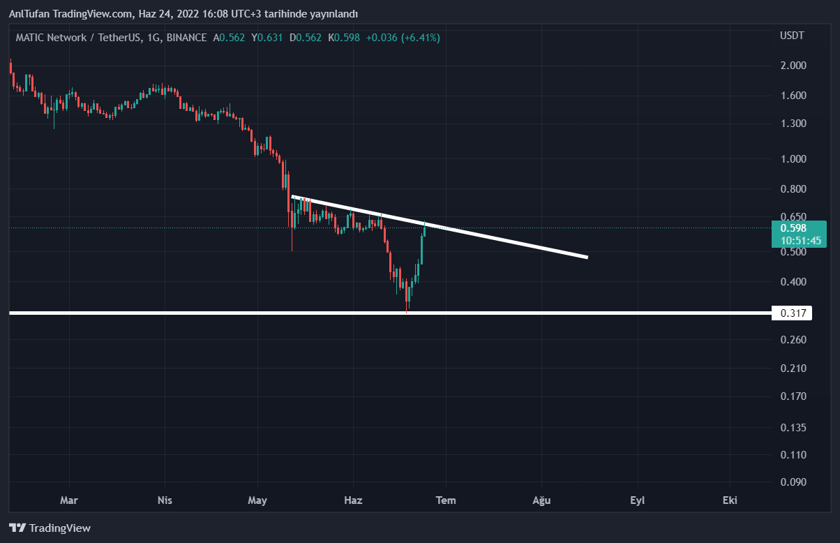 17 Haziran tarihinde paylaştığımız MATIC içeriğimizde yola çıkarak kritik destek noktası olarak aktardığımız 0.38 – 0.34 dolar aralığından işleme giren okurlarımız, yüzde 90’dan fazla kazanç sağlamayı başardı.