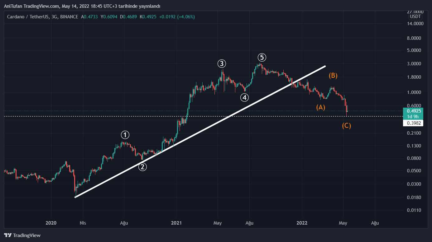 Geçtiğimiz dönemlerde ana yükselen trendini kaybeden Cardano, sert bir şekilde düşüşe başladığı gözlemlendi.