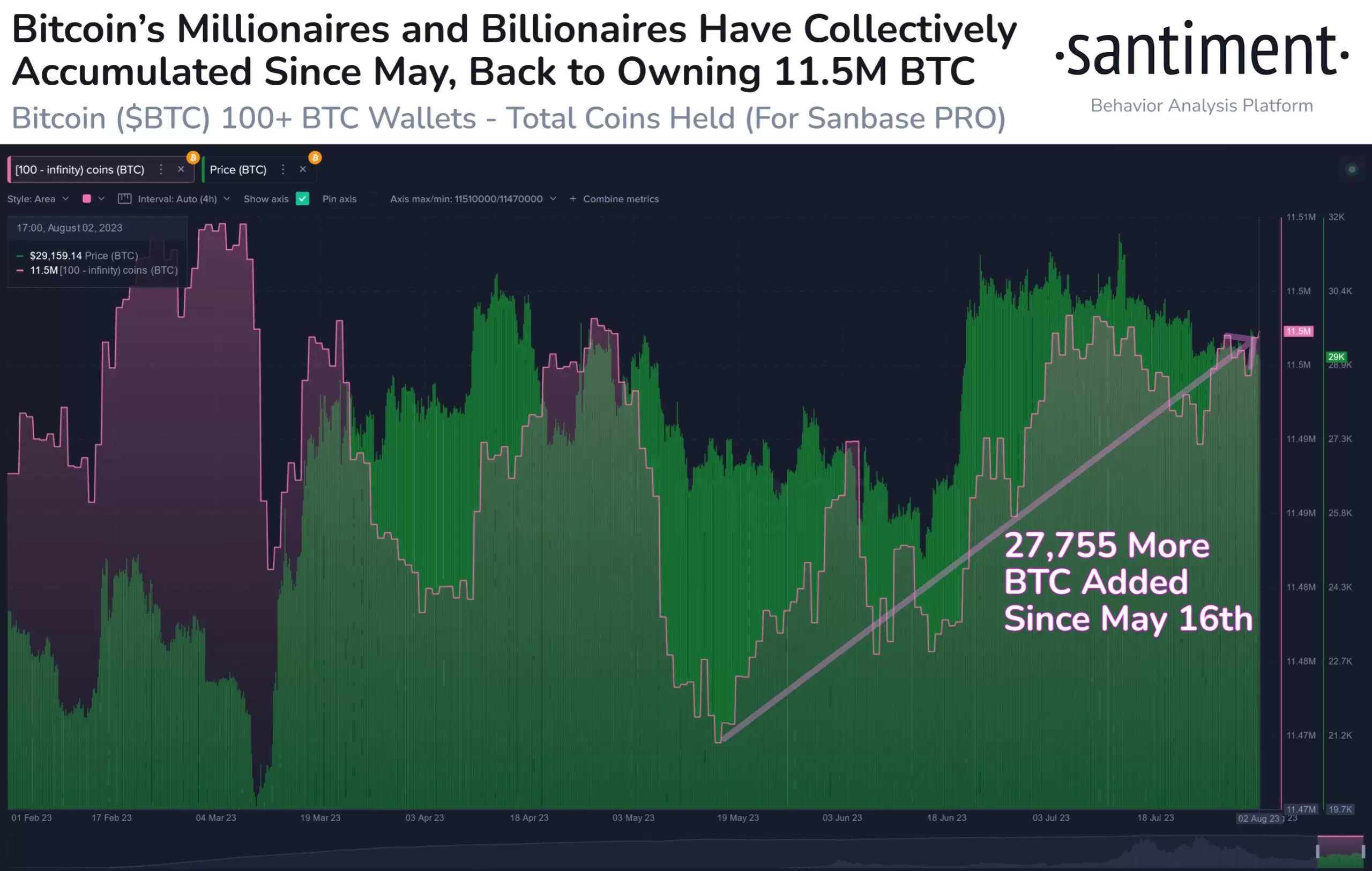 Son 12 haftada büyük yatırımcıların toplamda 27.755 adet BTC satın aldığını açıklayan Santiment, konu ile ilgili şu bilgileri paylaştı: