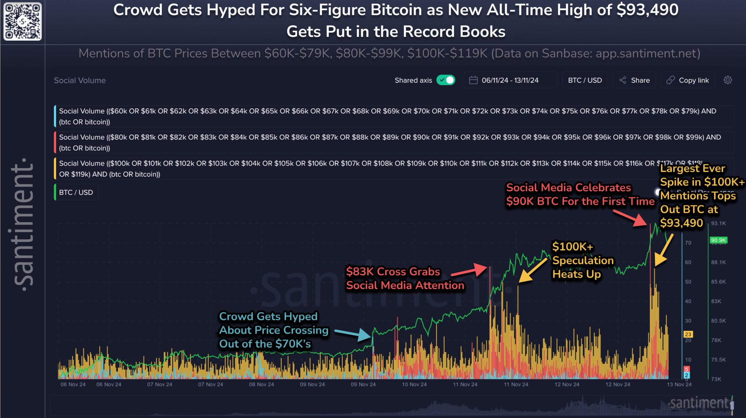 - Sosyal medya platformlarındaki hype, zirveyi oldukça güvenilir şekilde işaret ediyor; en büyük sinyal ise 4 saat önce görülen zirvede 100.000+ dolar BTC fiyat tahminlerinin hızla artmasını sağladı.