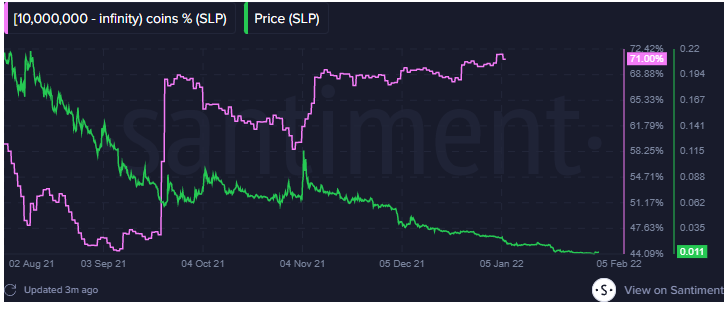 100.000 dolardan fazla değerde SLP tutan balina adreslerini de inceleyen Santiment, bu balina adreslerinin Kasım ayından bu yana SLP biriktirdiklerini ve satın aldıkları SLP’leri ise satmadıklarını vurgulamakta.