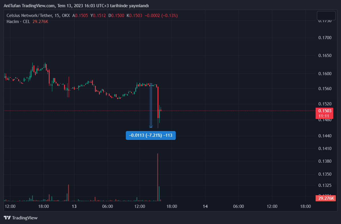 Kısa bir süre içerisinde yüzde 7 oranında değer kaybeden CEL, haberimizin yazıldığı esnada 0.15 dolar seviyelerinden işlem görüyor.