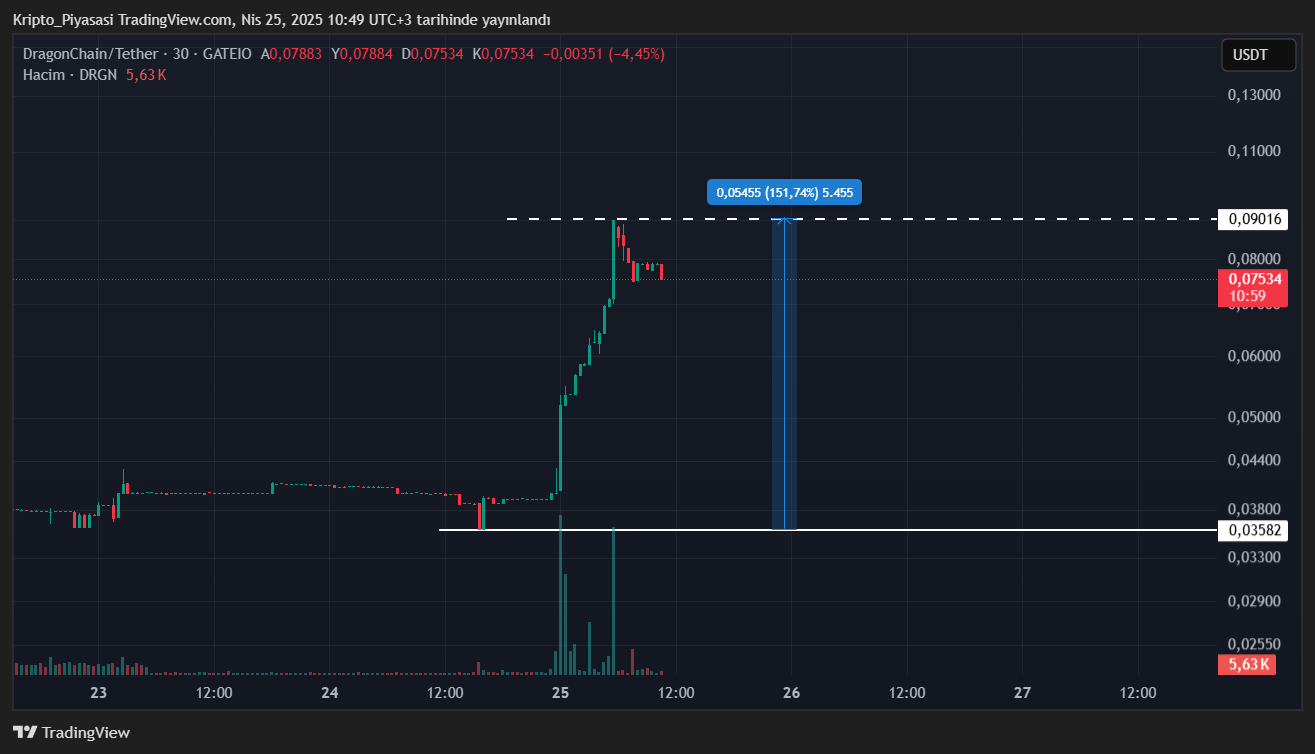 DRGN’nin son durumuna baktığımızda, bu son gelen haberler neticesinde bir anda %150 oranında değer kazandığı görülüyor. Hacim olarak çok düşük bir proje olan DRGN, yine de SEC’den gelen bu habere güçlü bir tepki vermeyi başardı.