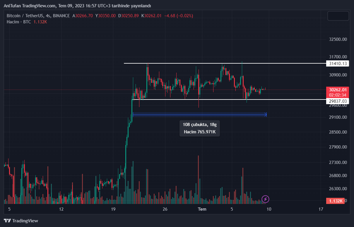 Tam 18 gündür 29.800 – 31.400 dolar aralığında git gel yapan BTC, yüzde 5’lik bir aralığın içerisine sıkışmış gibi gözüküyor. Bitcoin’in yatay hareketler sergilemesi, haliyle sektördeki FOMO’nun ve ilginin de azalmasına neden oldu.