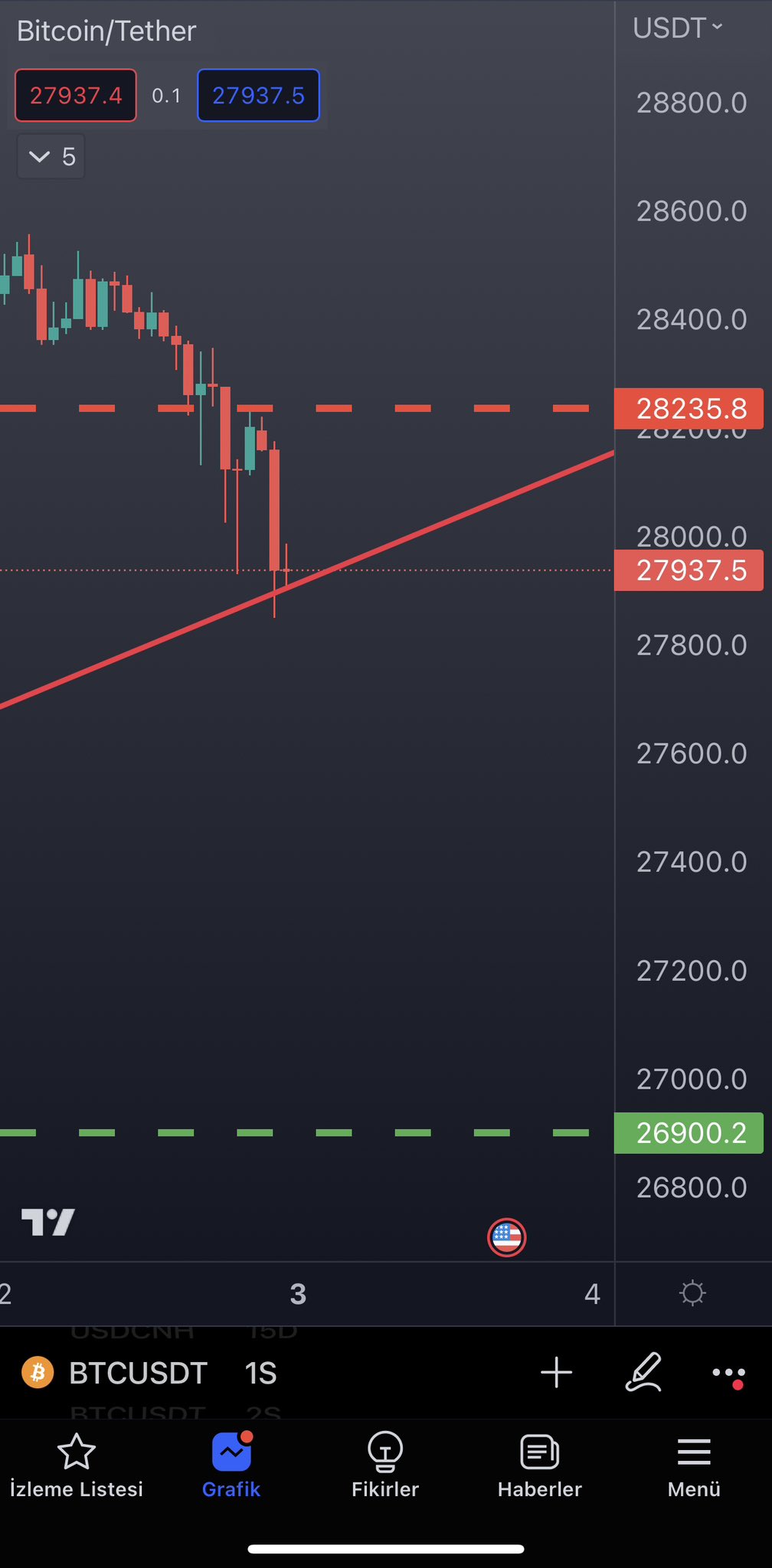 Bu gece itibariyle kripto para sektöründe haftalık kapanış gerçekleşecek. Selcoin’in Bitcoin grafiğini yakından incelediğimizde ise 28.235 dolar seviyesinde bir yatay çizginin olduğu görülüyor.