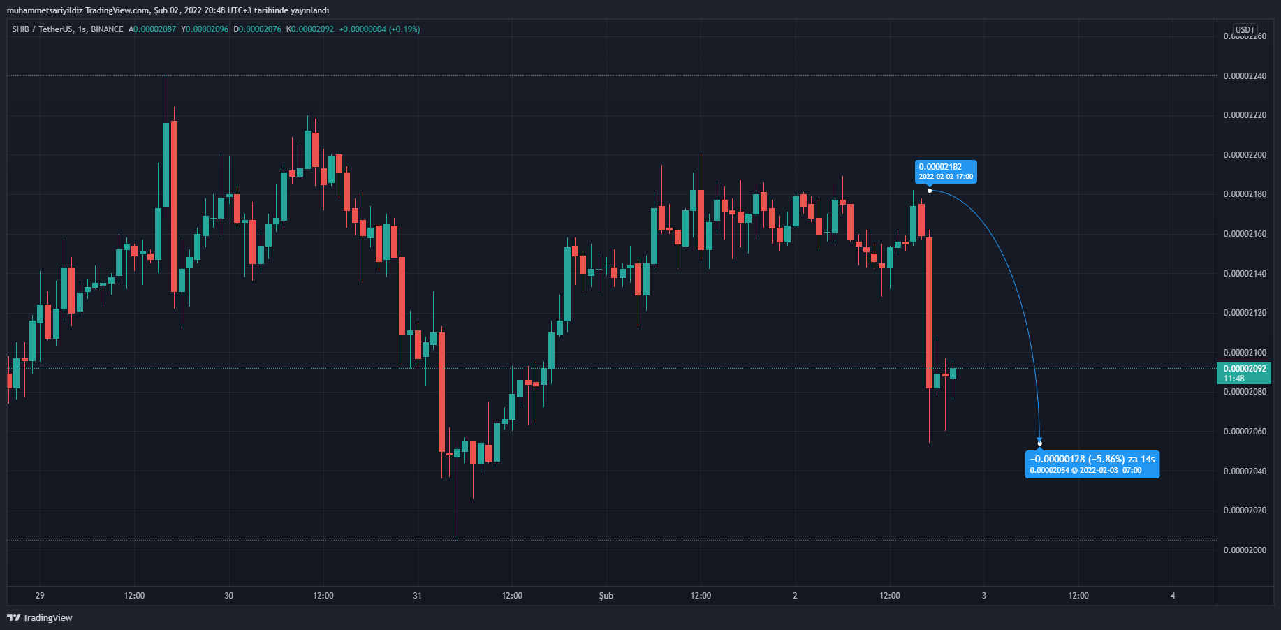 Shiba Inu, yazının yazıldığı sırada %6’ya yakın değer kaybı ile 0.00002091 dolar seviyesinde el değiştiriyor.