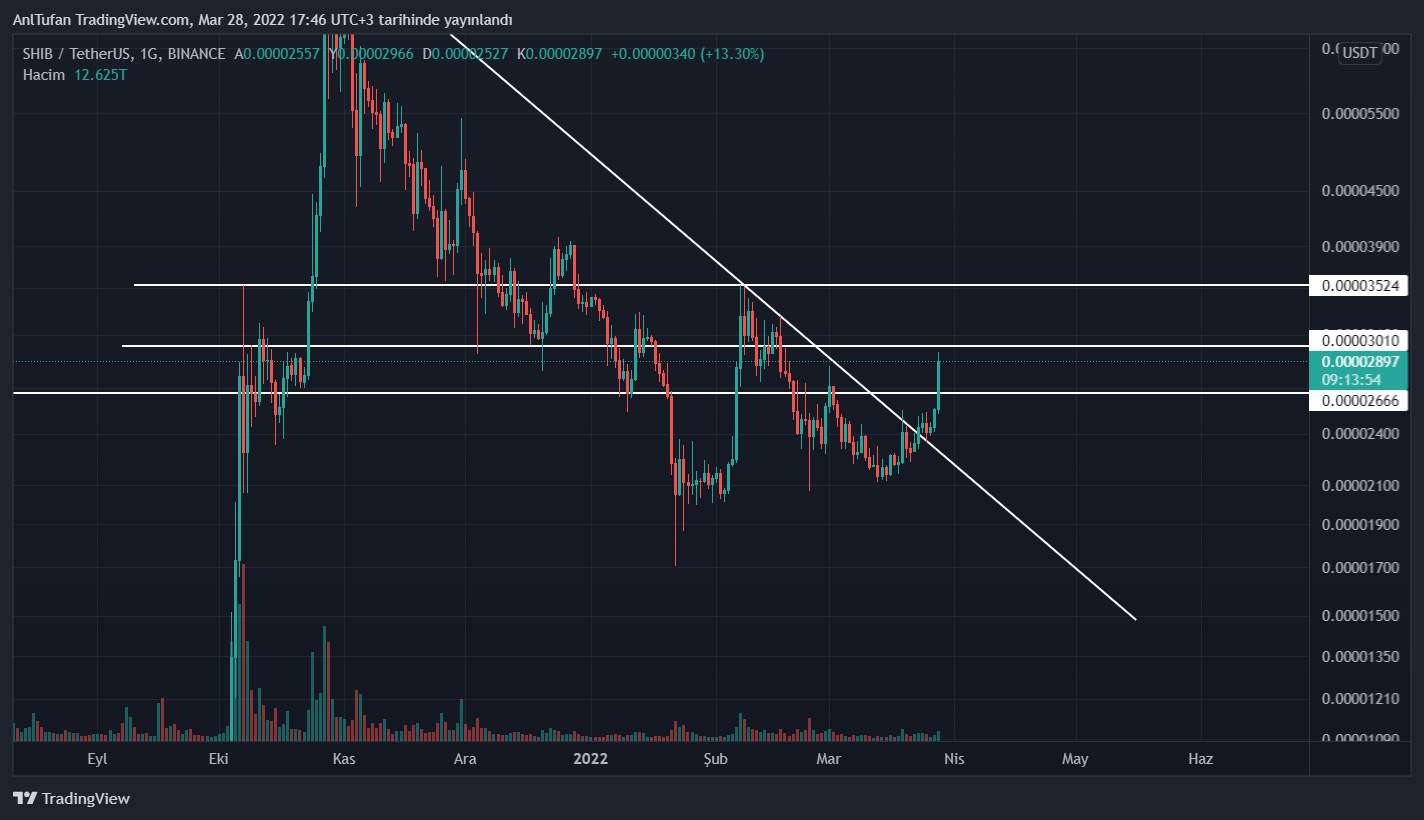 Dakikalar içerisinde %15‘e varan yükselişler sergileyen SHIB, 0.00002964 dolar bölgesinden ise reddedilmiş gibi gözüküyor.
