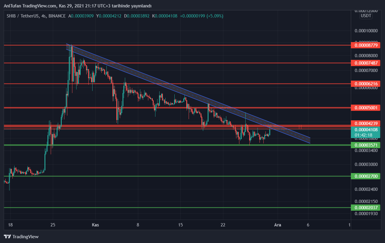 27 Ekim tarihinde gerçekleştirdiği ATH seviyesinden bu yana kadar trend çizgisinin üstünde kapanış yapamayan Shiba Inu, trendin kırılmasıyla yükselişin sertleşeceği bekleniyor.