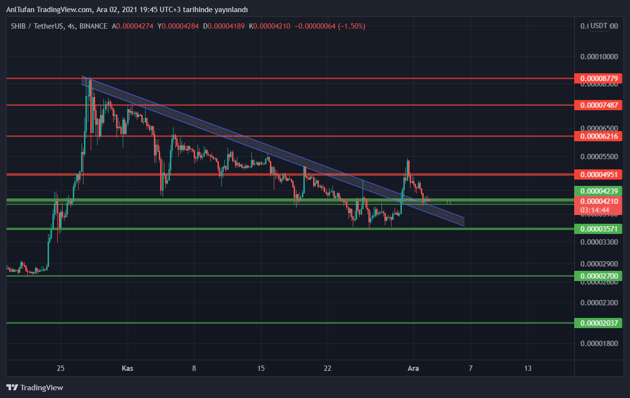 0.00004200 dolar destek seviyesini aşağı yönlü kırmasıyla birlikte 0.00003571 dolar desteğine kadar gerileyebilecek olan Shiba Inu, bu seviyenin altına sarkması beklenmiyor.