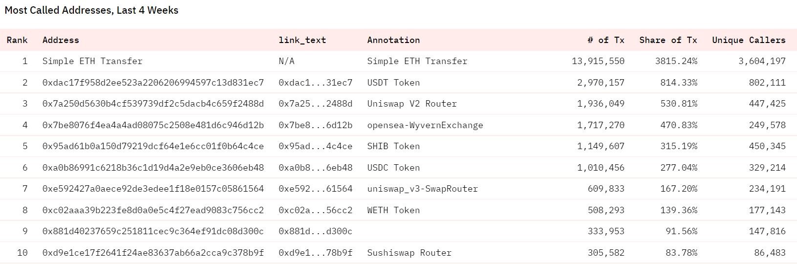 Bir analiz firması olan Dune Analytics’e göre Shiba Inu, UniSwap v3 SwapRoyter, USDC ve WETH kripto paralarının beğenilerini bile geride bıraktığı görülüyor. Ayrıca verilere göre Shiba Inu’nin, 450.000’den fazla farklı cüzdan adresi olduğu söyleniyor. Bu da meme coinin benimsenme oranının ve yatırımcısının ne kadar yüksek olduğunu göstermekte.
