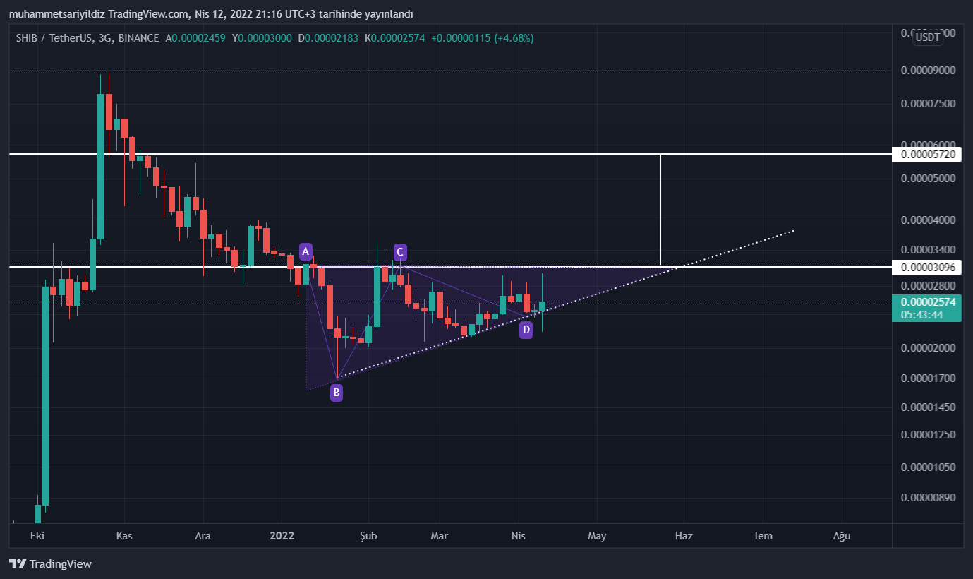 Haberimizin yazıldığı esnada 0.00002585 dolar seviyelerinde bulunan Shiba Inu, yükselen üçgen formasyonunun içerisine girmeyi başardı.
