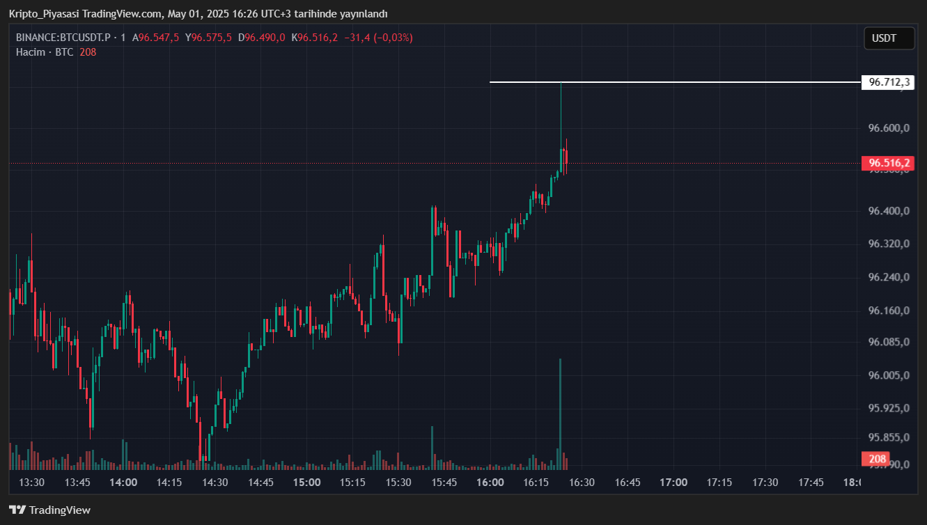 Charles Schwap CEO’su Walt Bettinger’in şirketin kripto para hamlesini açıklaması sonrası Bitcoin (BTC) Binance vadeli piyasada 96.712 dolar seviyelerine kadar iğne attığı görüldü.