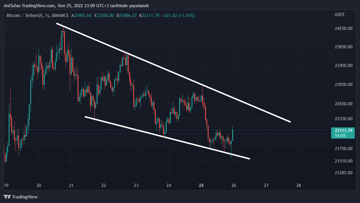 Joe Biden’ın ekonomik durgunluk hakkında yaptığı açıklamaların ardından kısa bir sürede 21.500 dolardan 22.200 dolara yükselen Bitcoin, ilerleyen saatlerde 22.700 doları kırmasıyla birlikte çok daha sert yükselişler yaşayabilir.