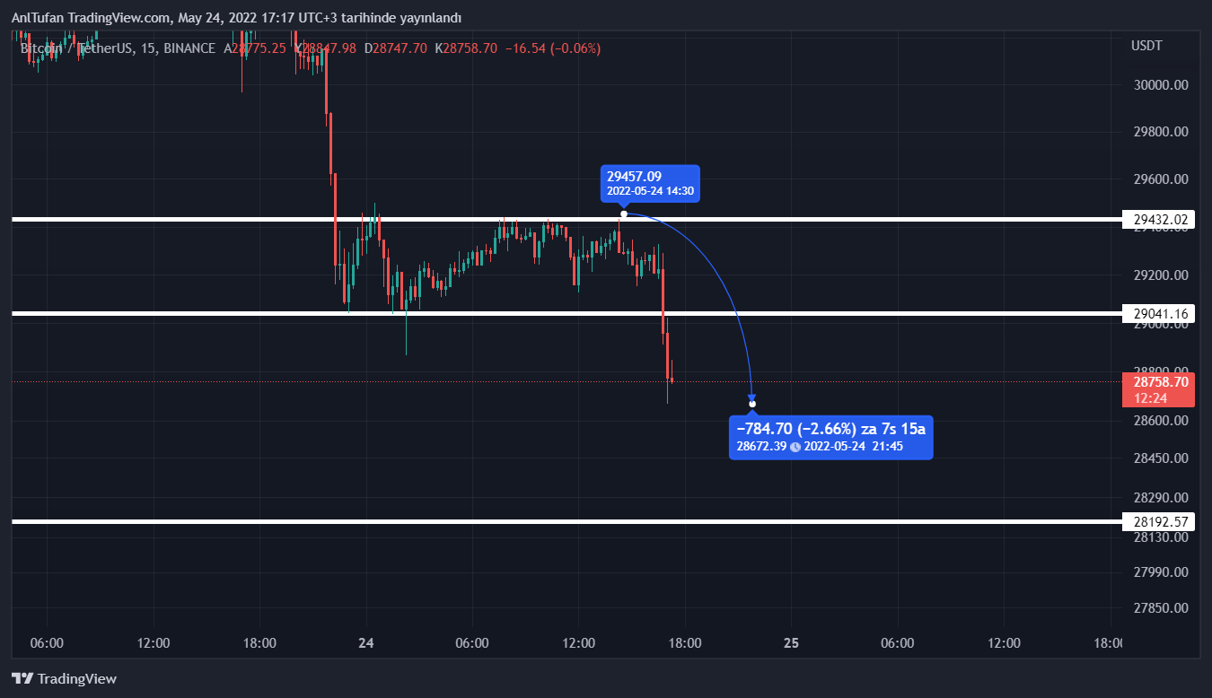Yaşanan bu düşüşler esnasında %3’e yakında bir değer kaybına uğrayan BTC, ilerleyen saatlerde 29.000 doların tekrardan aşamaması halinde ise tekrardan düşüşlere devam edebilir gibi gözüküyor.