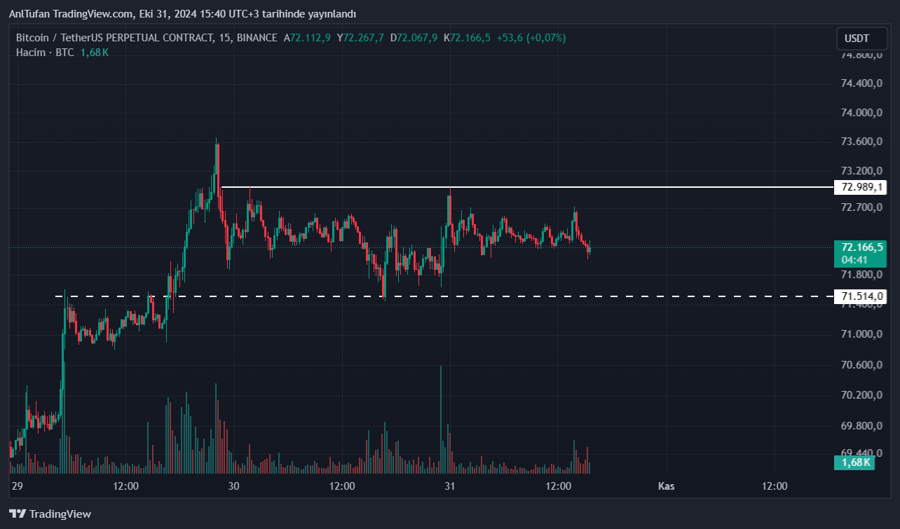 Bir süredir 71.500 – 73 bin dolar aralığında akümüle olan BTC, önümüzdeki günlerde bir kırılım ile tekrardan volatil hareketler sergileyebilir.