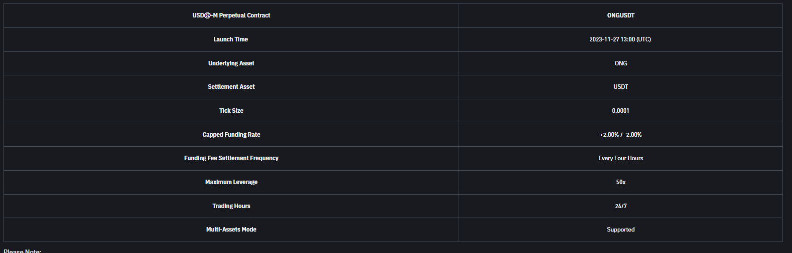 Dev kripto para borsası Binance, bugün itibariyle paylaştığı duyurular ile gündemde kalıyor. Popüler borsa geçtiğimiz dakikalarda resmi internet sitesi üzerinden paylaştığı duyuru ile ONG isimli altcoin‘i vadelide listeleyeceğini aktardı.