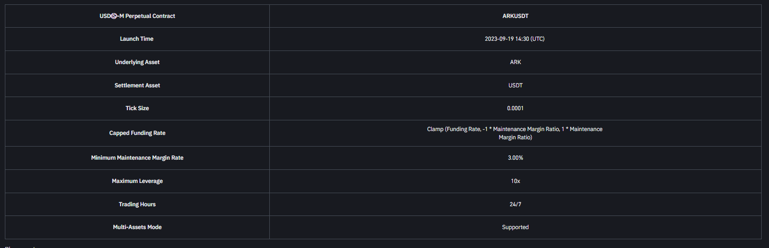 USDⓈ-M ARK Sürekli Sözleşmesine ilişkin daha fazla ayrıntıyı aşağıdaki tabloda bulabilirsiniz:”