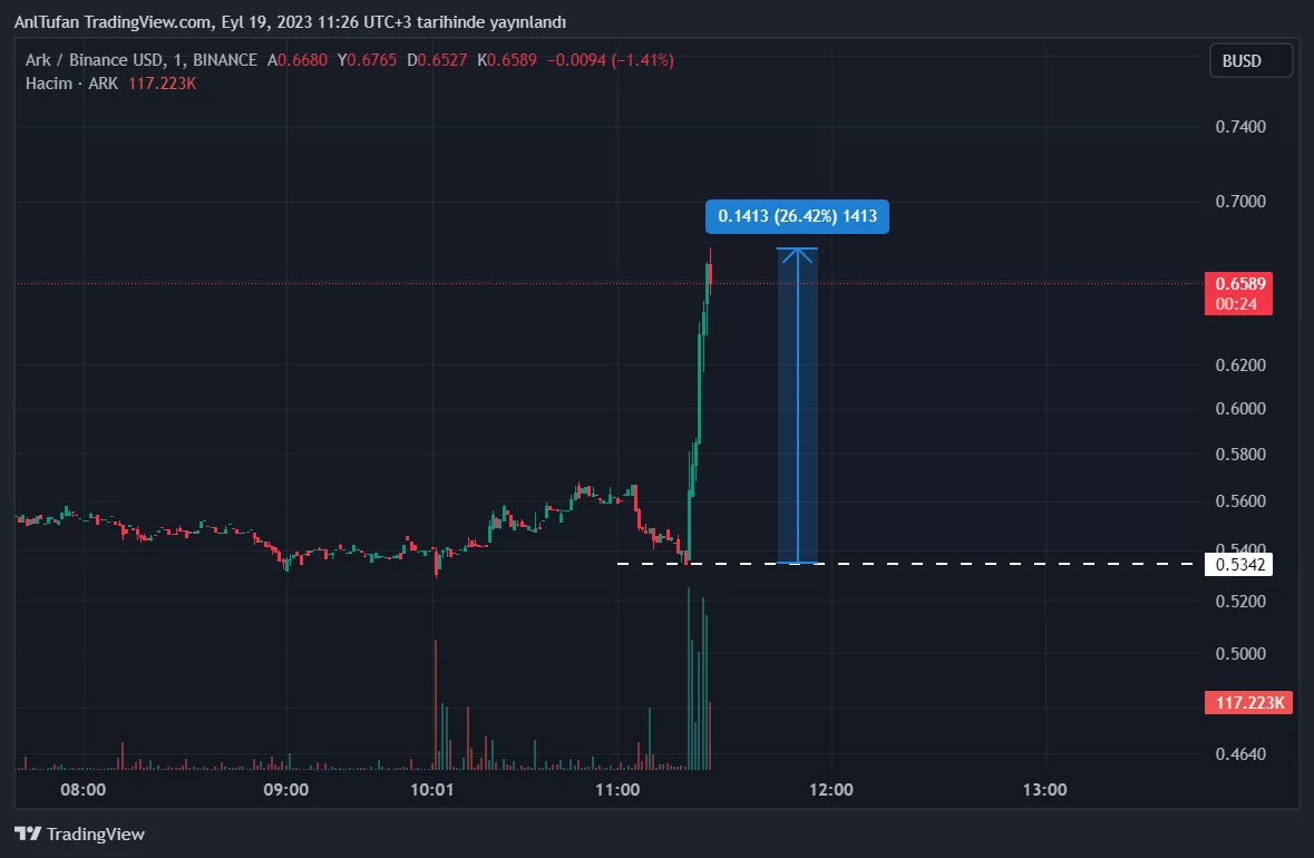 Binance önümüzdeki süreçte 10 kata kaldıraçla ARK vadeli işlemlerini başlatacak. Bu gelişme sonrasında ARK isimli altcoin’in yüzde 25’lik bir yükseliş yaptığı gözlemlendi.