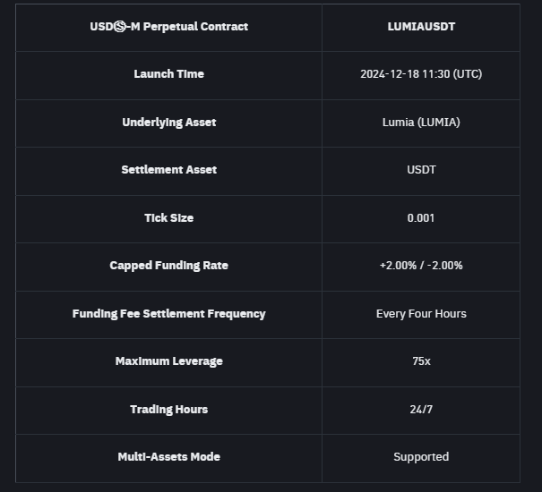 Binance son paylaştığı LUMIA vadeli listeleme duyurusunda başlıca şu bilgilere yer verdi: