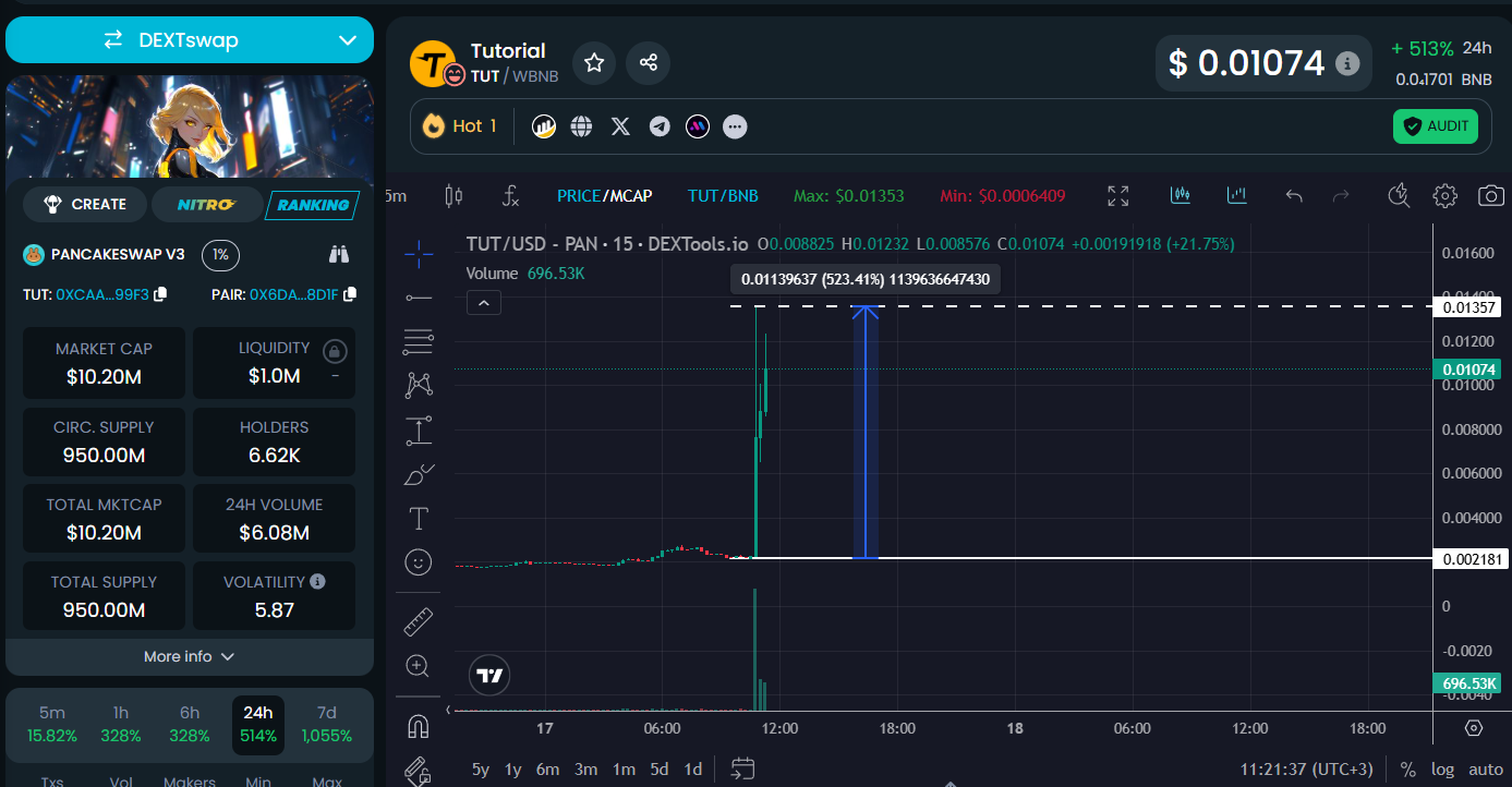 Binance Başkanı CZ’nin içerisinde Tutorial’ın (TUT) yer aldığı videoyu alıntılaması, haliyle TUT fiyatında ani yükselişleri tetikledi. Dakikalar içerisinde %500’den fazla yükseliş yaşayarak değerini altıya katlamasını sağladı.