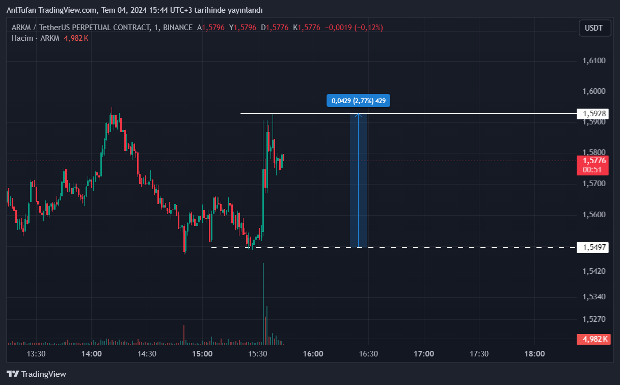 Son dakikalarda gelen bu bilgiler ile birlikte Arkham (ARKM) isimli altcoin yükselişe geçti. Kötü piyasa şartlarına rağmen ARKM fiyatında %3’e yakın bir sıçrama yaşandı.
