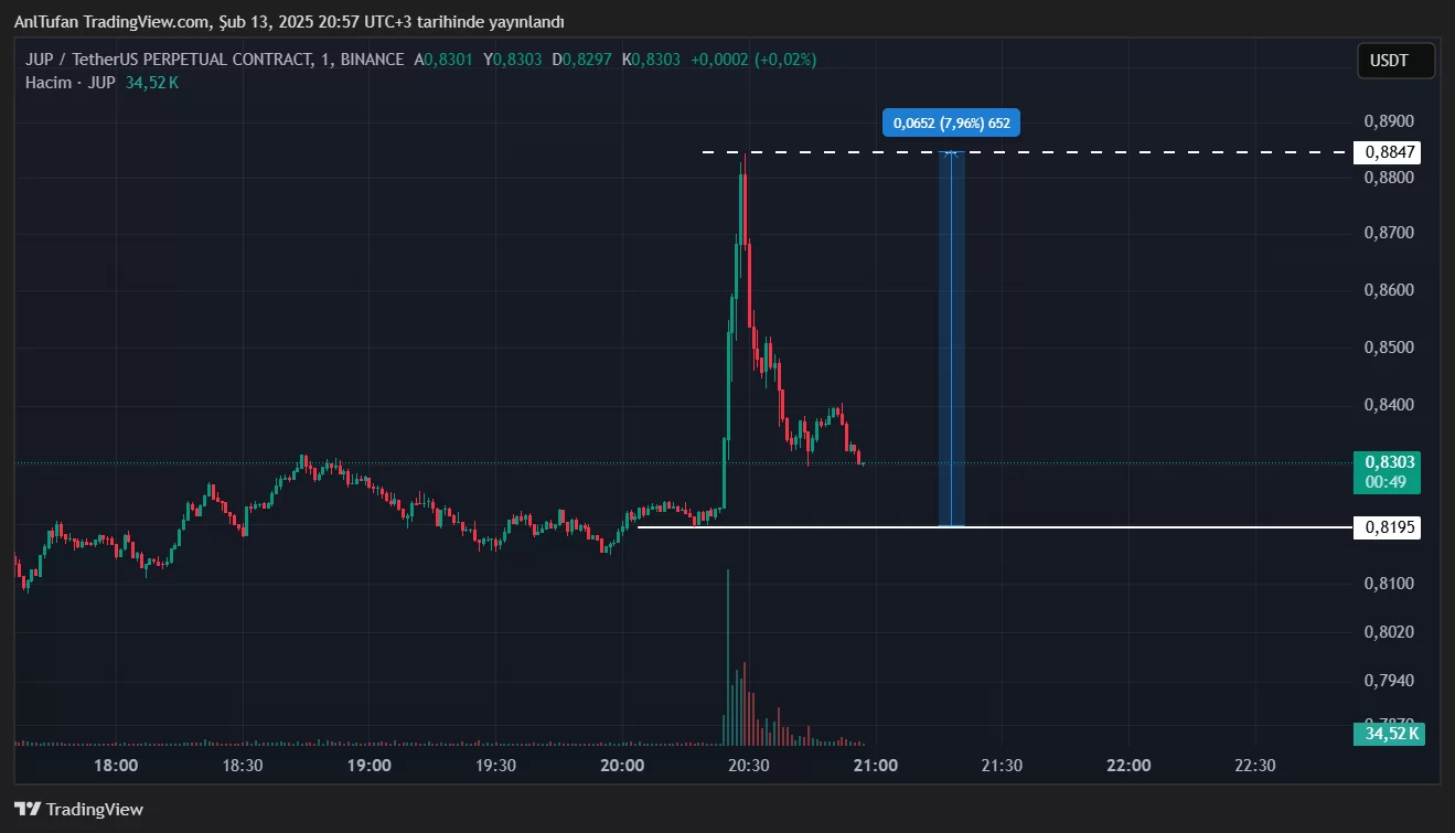 Son dakikalarda Jupiter (JUP) fiyatında gelen güzel haberlerle birlikte %8’lik bir yükseliş meydana geldi. Ancak bu artışa rağmen piyasadaki kötü gidişat, JUP’un yükselişlerinin önemli bir kısmını kaybetmesine yol açtı.