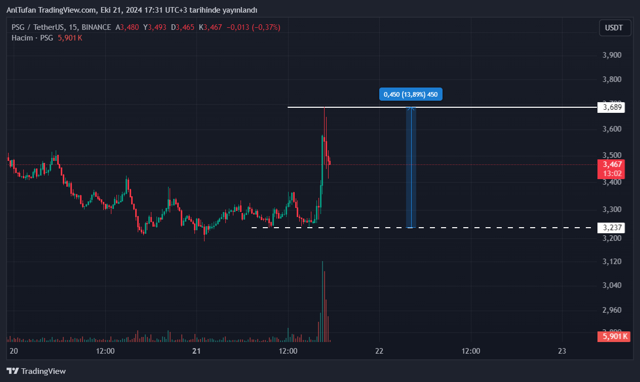 Bu gelen haberler ile birlikte Paris Saint Germain Fan Token (PSG) hareketlendi. PSG Token son dakikalarda %13 oranında değer kazanmayı başardı.