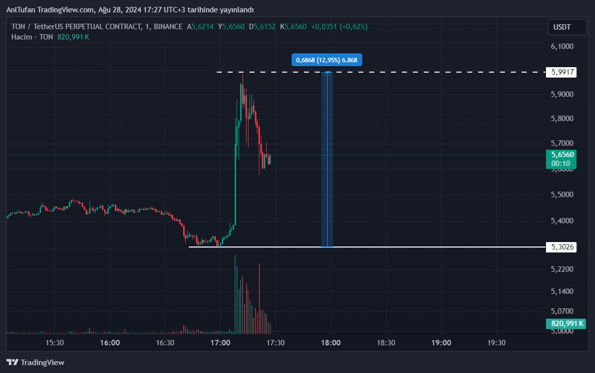 Bu son dakikalarda gelen haberler ile birlikte TON fiyatında yukarı yönlü hareketlerin meydana geldiği görüldü. TON son dakikalarda %13 oranında değer kazanmayı başardı.