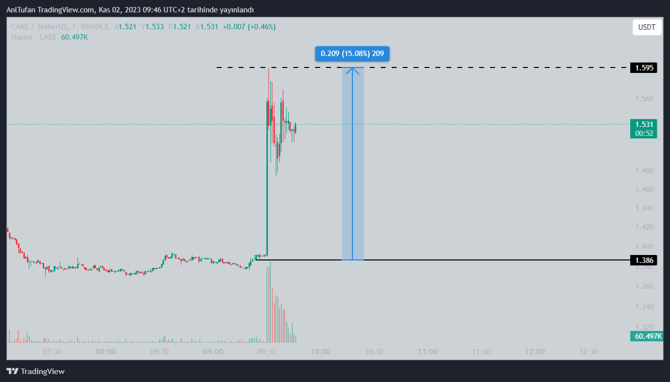 Binance’iN CAKE’i 50’ye kadar kaldıraçla vadeliye ekleyeceğini duyurması, haliyle popüler altcoin’in yukarı yönlü hareketler sergilemesini sağladı.