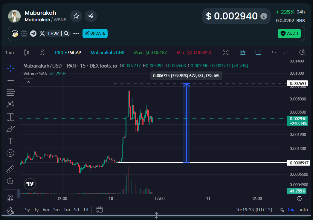 Yi He’nin hesabından yapılan token tanıtımlarında MUBARAKAH isimli altcoin öne çıktı. Tanıtımlar sonrasında ciddi yükselişler yaşayan MUBARAKAH, sekiz kattan fazla yükselmeyi başardı.