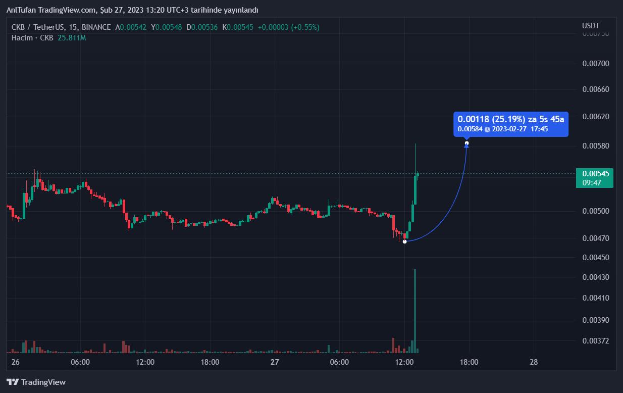 Binance’in CKB isimli altcoin’i vadeli işlemlere eklemesi bu ürünün piyasadan ayrışarak yükselişe geçmesini sağladı. Dakikalar içerisinde yüzde 25’den fazla değer kazanan CKB, yükselişlerine devam edecek mi? merak konusu..