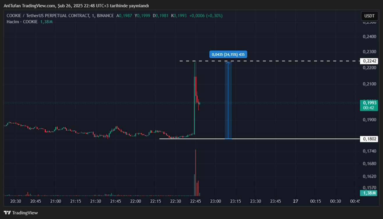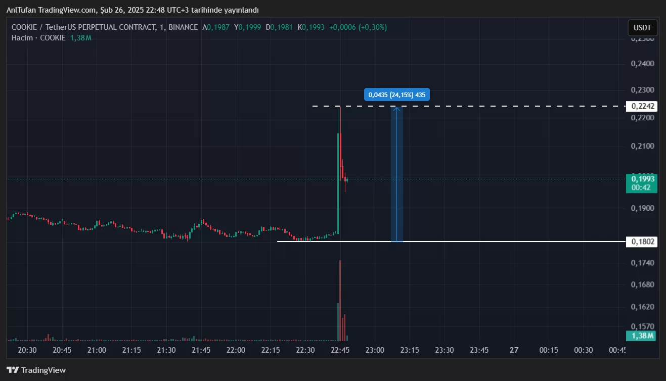 Daha önce dev kripto para borsası Binance’de de listelenmiş bir altcoin olan COOKIE, bu son gelen haberler ile güçlü bir sıçrama gerçekleştirdi. COOKIE piyasadaki düşüşlere rağmen, listeleme müjdesi ile %24 oranında değer kazanmış durumda.