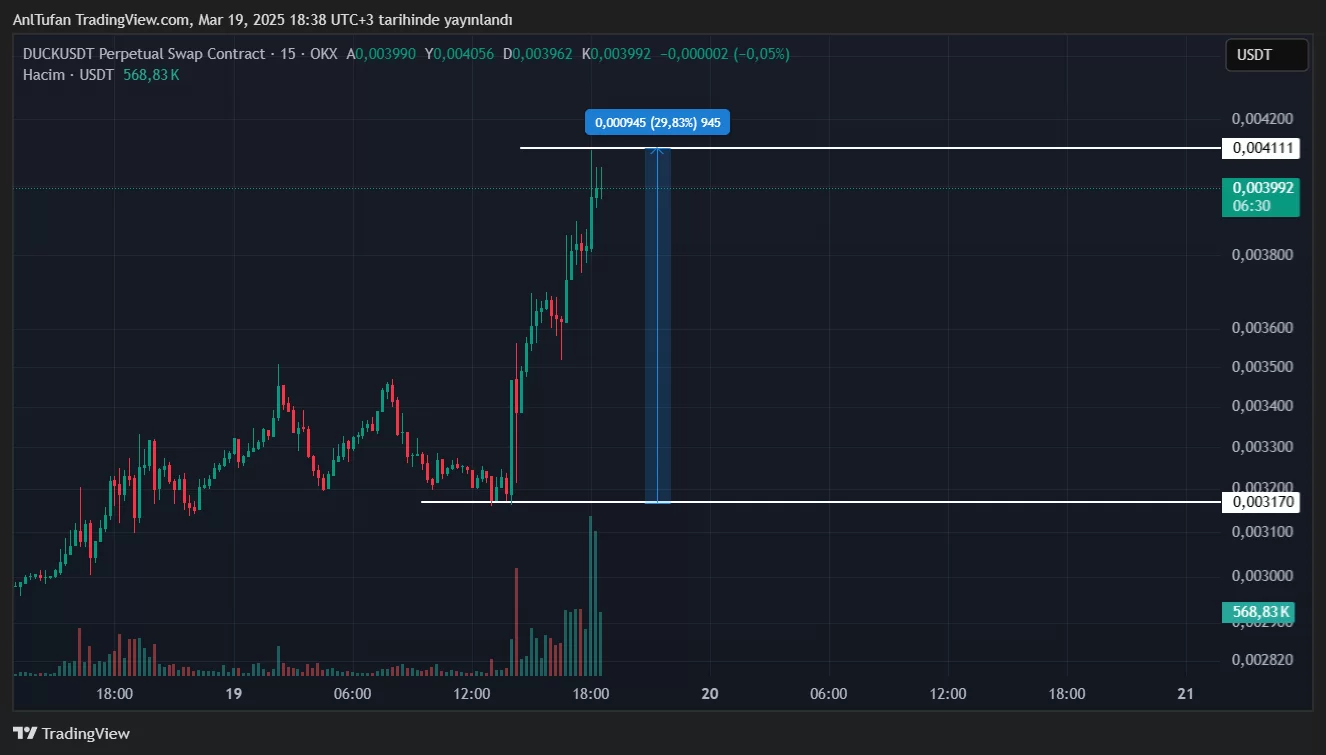 Bu son listeleme duyurusu ile birlikte DUCK fiyatında yükselişlerin yaşandığı görüldü. Kısa bir süre içerisinde %30 oranında değer kazanmayı başaran DUCK, yatırımcıların dikkatini çekti.