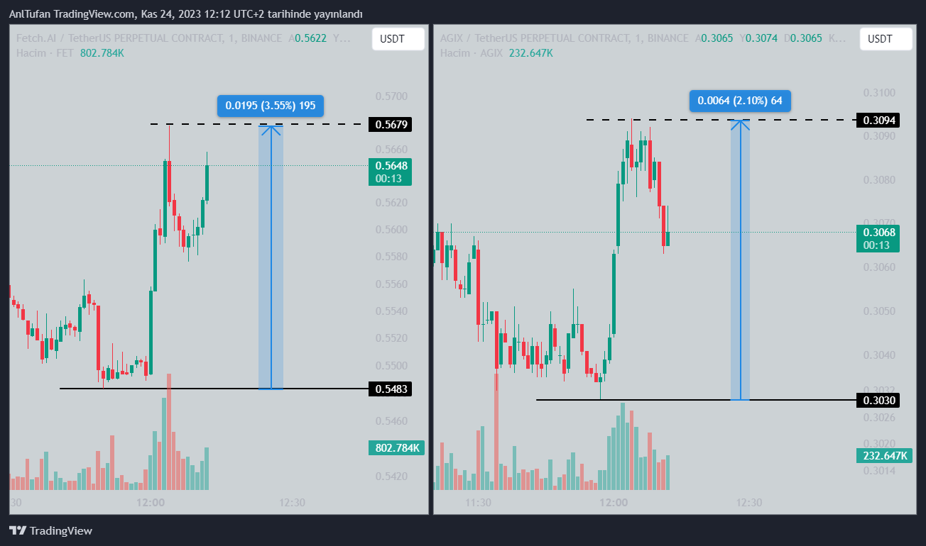 Bu gelen listeleme duyurusu ile birlikte FET ve AGIX’in yukarı yönlü hareketler sergilediği görüldü. Bu ürünler Binance‘de de listelendiğinden ötürü dev sıçramalar meydana gelmedi.