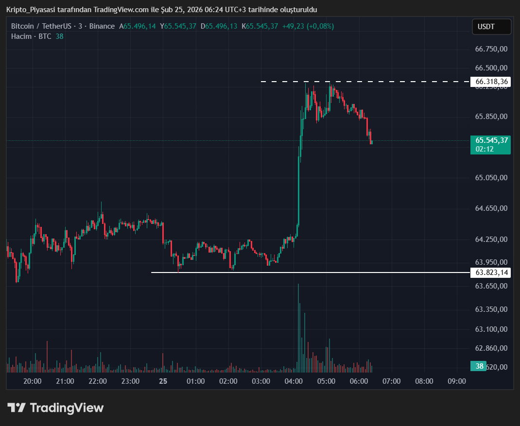 Bitcoin (BTC) bu son yaşanan yükselişler doğrultusunda 63.800 dolar seviyelerinden 66.300 dolar seviyelerine kadar yükseldi. BTC yükselişin ardından ufak bir geri çekilme de yaşadı.