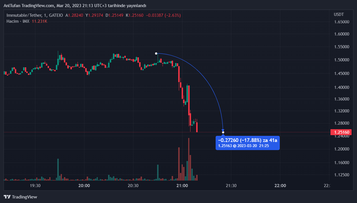 Immutable ve Polygon, yeni EVM uyumlu ZK-Rollup için ortaklık kurduğunu duyurmasının ardından IMX’in volatil bir şekilde değer kaybettiği görüldü. Kısa bir süre içerisinde yüzde 17 oranında değer kaybeden IMX, halen toparlanamamış durumda.
